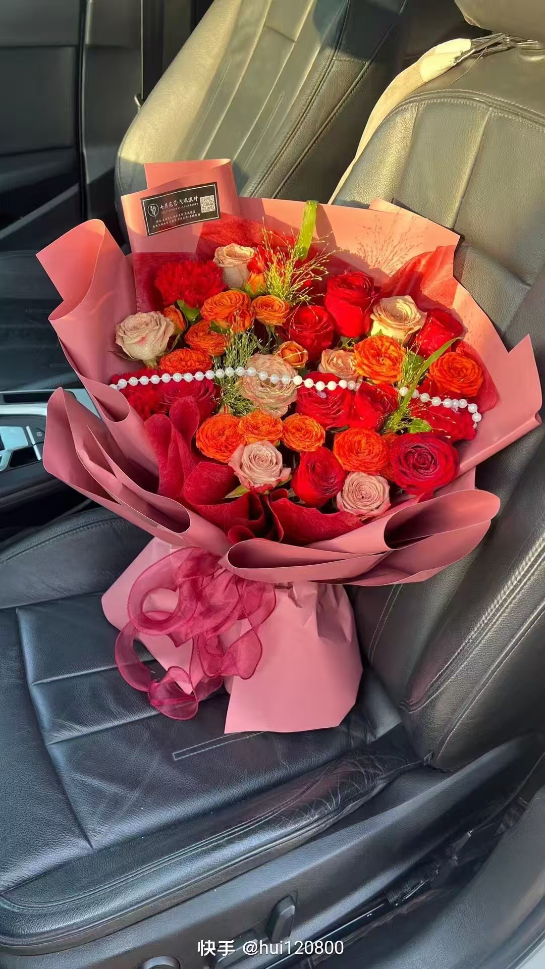 上海花千坊爱上海副驾花和一束19朵的碎冰蓝花束,加灯串 |