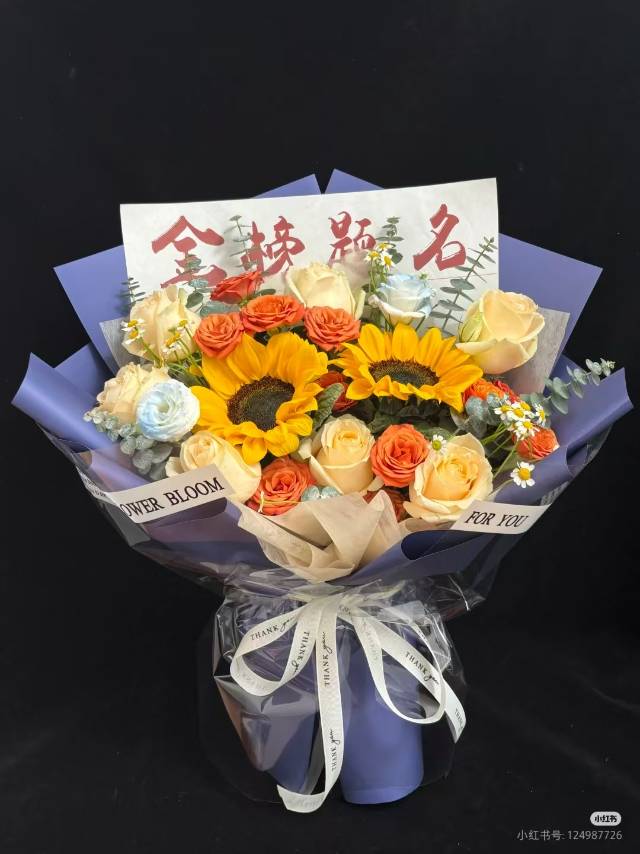 11朵粉玫瑰2向日葵混搭花束 按图 |