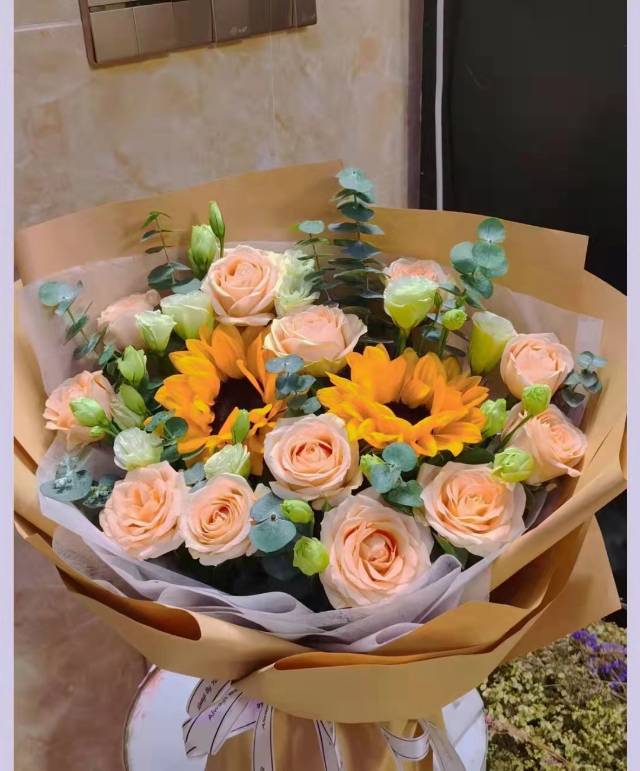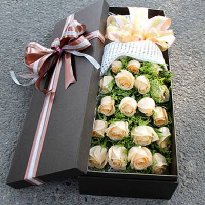 上海花千坊爱上海19朵香槟玫瑰花束,如图包 |