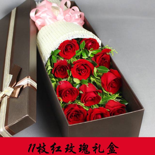 11朵红玫瑰2小熊礼盒装如图包装 |