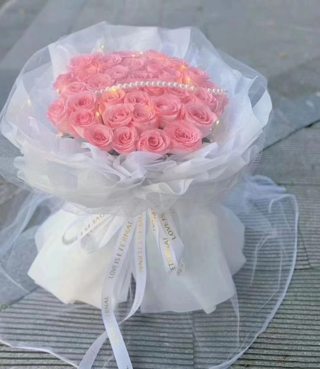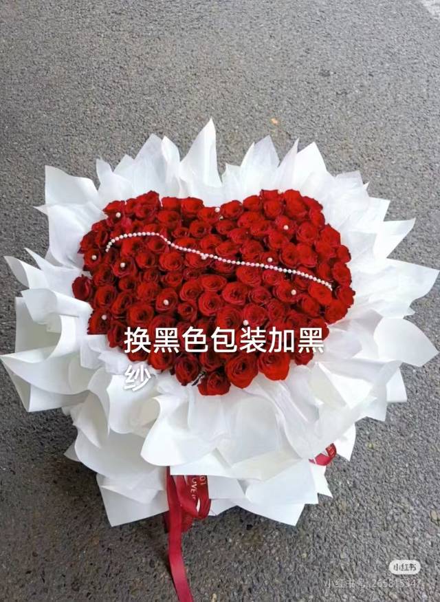 上海花千坊爱上海99朵红玫换成黑色包装纸加黑纱的。 |