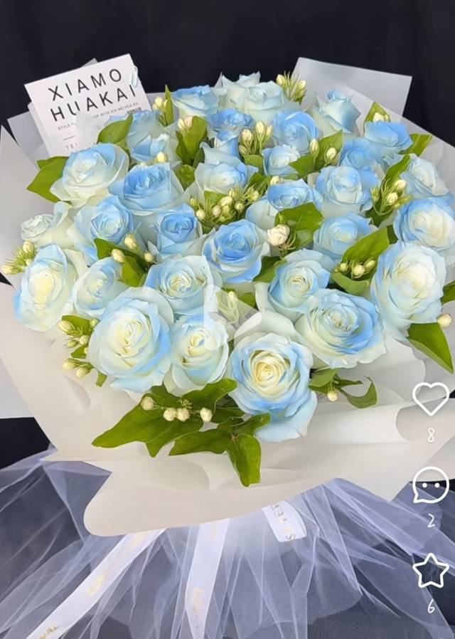 上海花千坊爱上海33支碎冰蓝配茉莉花一束+11支香槟玫瑰3支向日葵橙芭芘花束(共2束) |