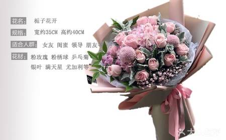 上海花千坊爱上海15朵粉玫瑰2朵粉色绣球2朵乒乓花球花束,如图 |