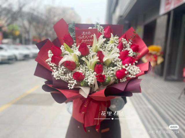 33朵红玫加百合如图 |