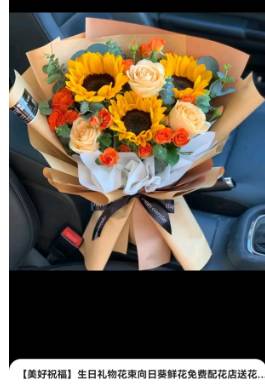 上海花千坊爱上海16支香槟2支向日葵配橙芭芘洋桔梗花束 |