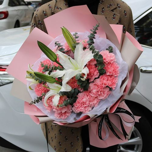 19支粉康乃馨1支多头白百合混搭花束 数量:1 |