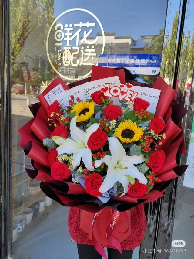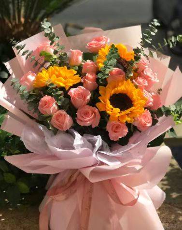 9朵红玫瑰2支向日葵混搭花束 如图包装 |