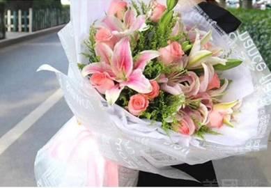 11粉玫瑰加13粉百合鲜花束,如图 |