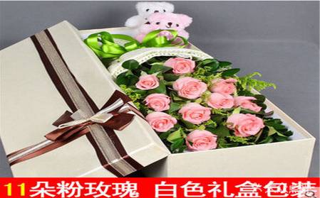 上海花千坊爱上海11朵粉玫瑰2小熊礼盒装 如图 |