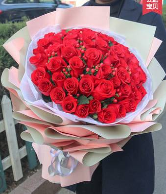 上海花千坊爱上海52朵红玫瑰花束 款式包装如图 |
