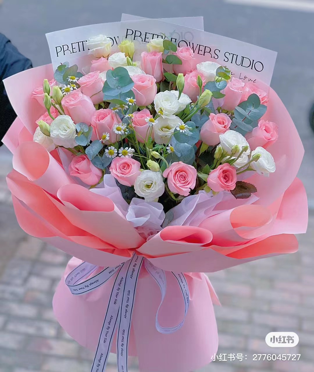 上海花千坊爱上海33支粉色康乃馨花束 按图包装 |