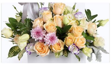 上海花千坊爱上海19朵香槟玫瑰+5香槟紫色洋桔梗混搭手提花篮 一个(紫边洋桔梗换绿洋桔梗和波浪粉洋桔梗混搭),有卡片 ,按时送达。 |