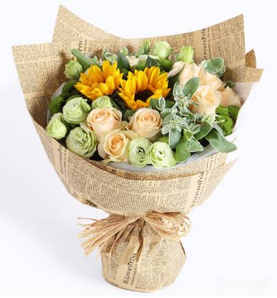 11朵香槟2朵向日葵混搭梗桔花束 款式包装如图 |