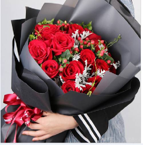 上海花千坊爱上海热恋-23朵红玫瑰鲜花束,如图包 |