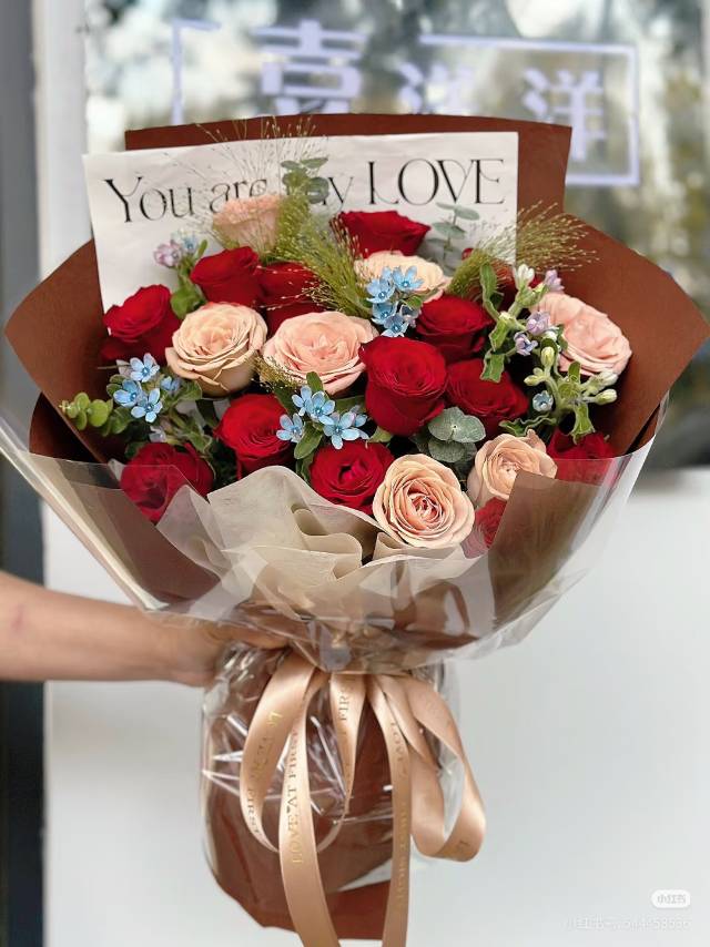 上海花千坊爱上海11朵红玫瑰8朵卡布奇诺混搭花束,按图包 |