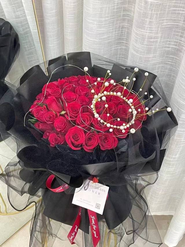 上海花千坊爱上海33支红玫瑰黑纱款加皇冠彩灯 |