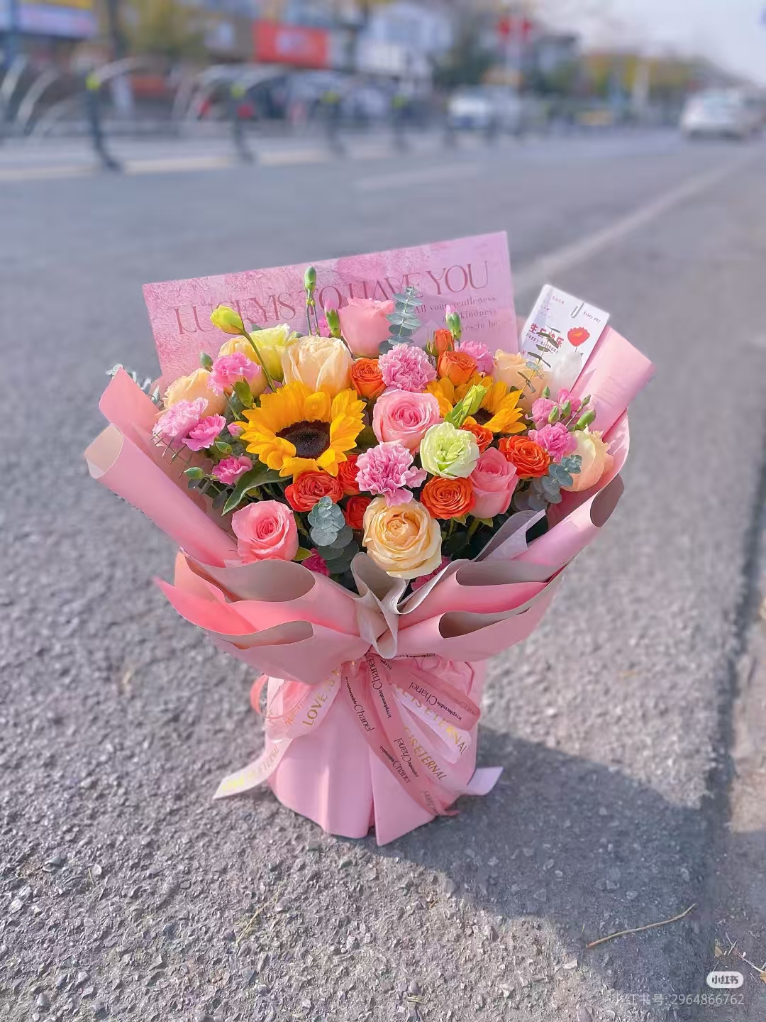 52朵红玫瑰花束按图包+一个6寸动物奶油生日蛋糕,如图 |