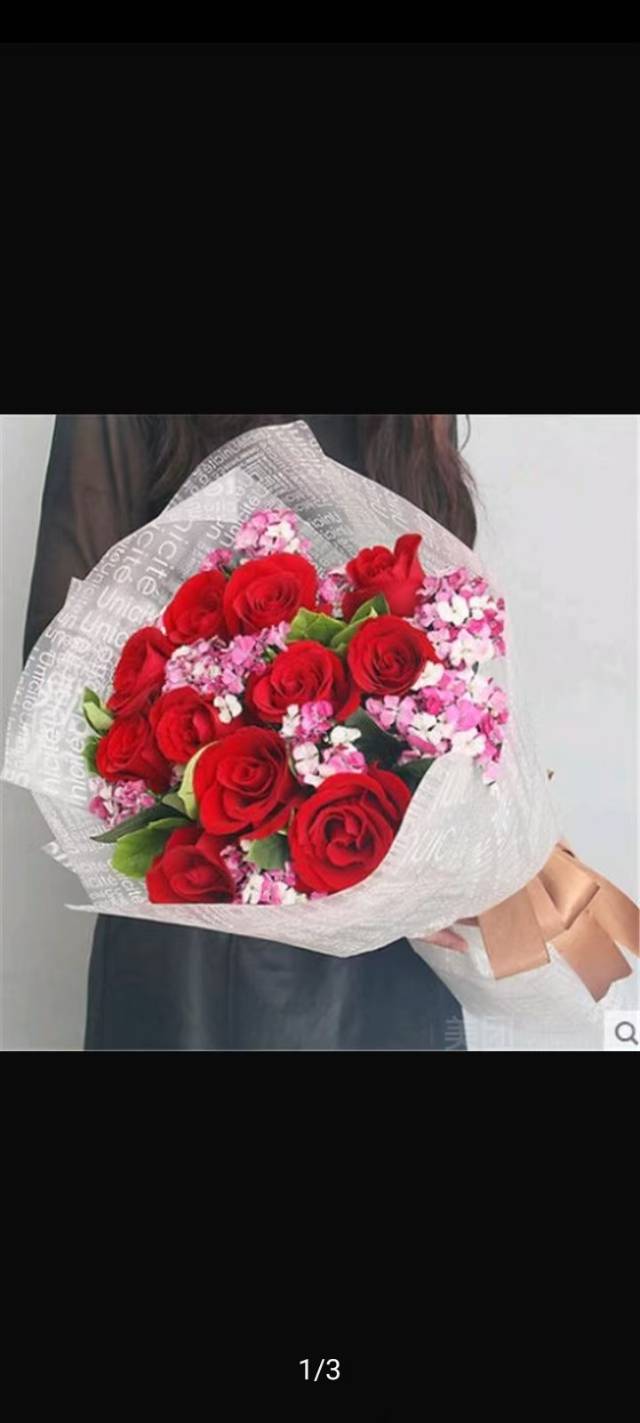 11朵红玫瑰百合花束 款式包装如图 要红色包装纸