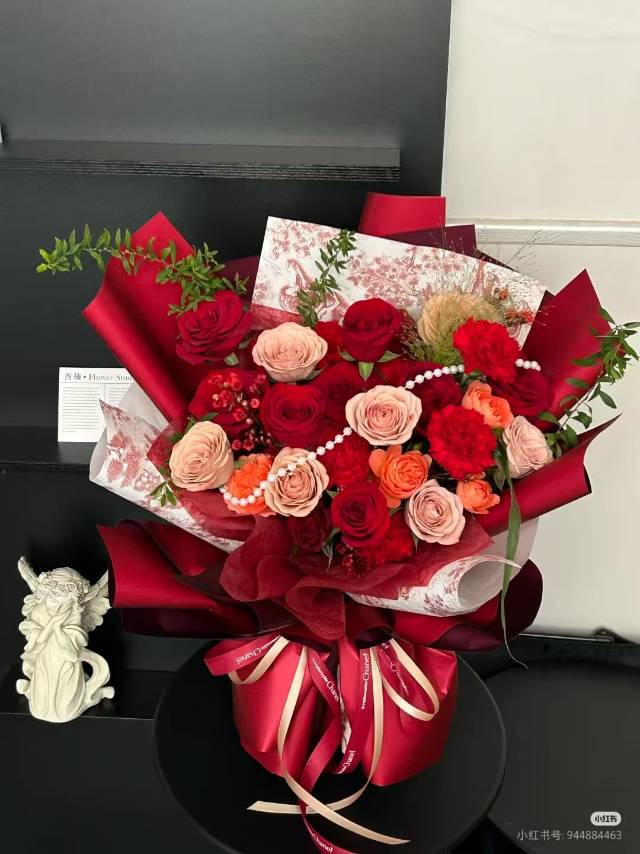 19朵红玫瑰卡布奇诺混搭花束+一个苹果,如图 |