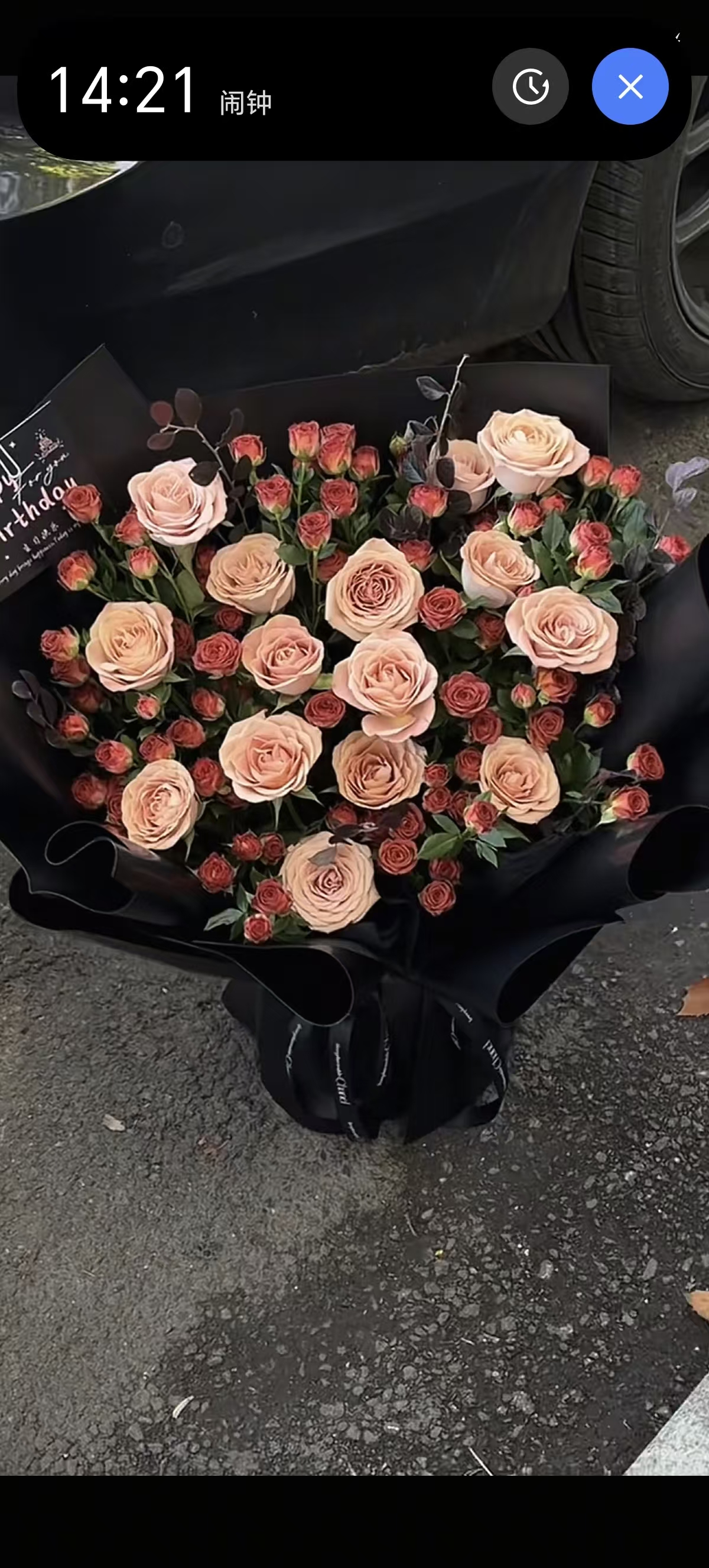 11朵粉玫加9支桔梗加2朵绣球。如图包。 |