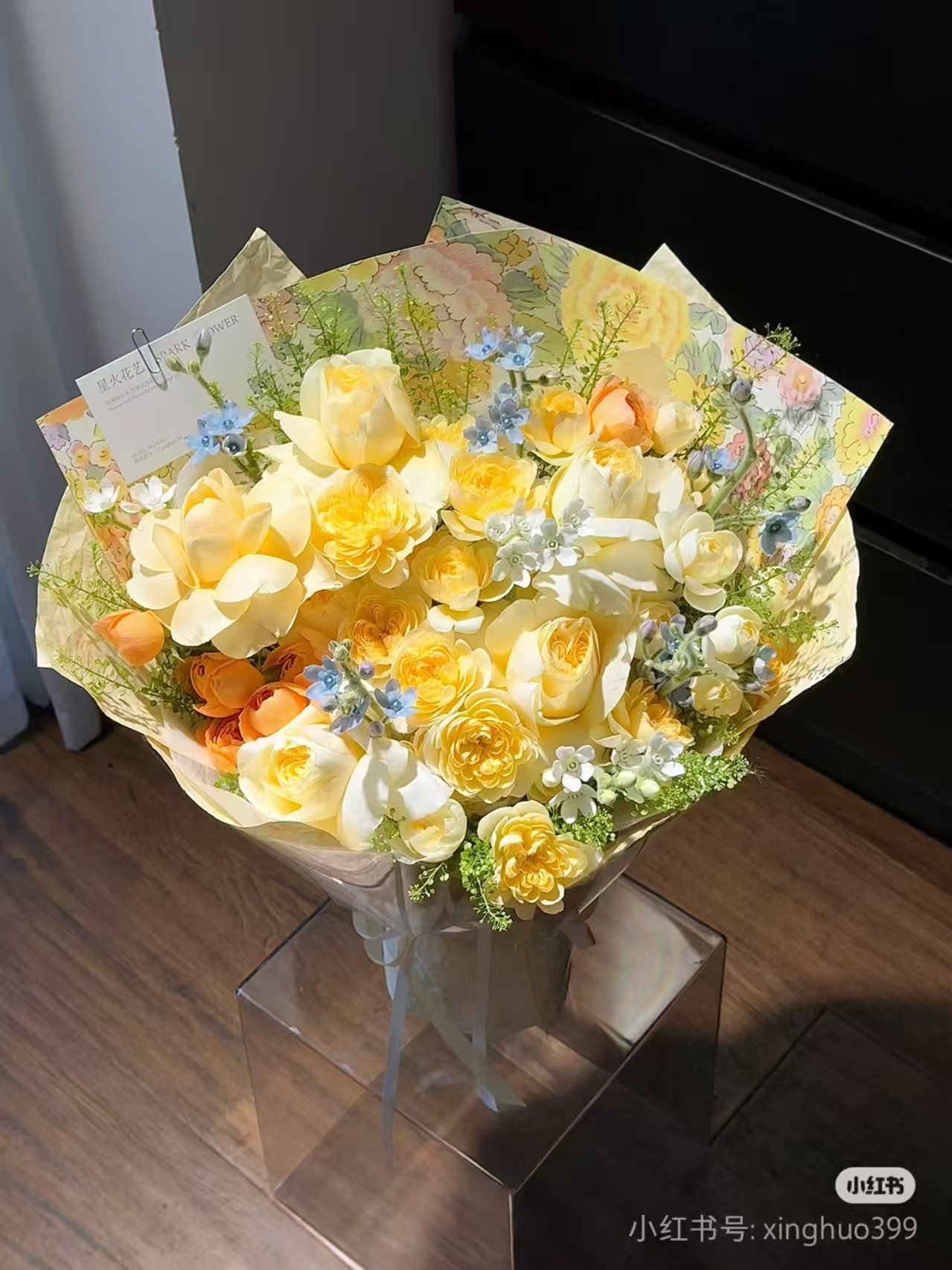 上海花千坊爱上海十八朵白玫瑰三朵蝴蝶兰花束,按图包 |