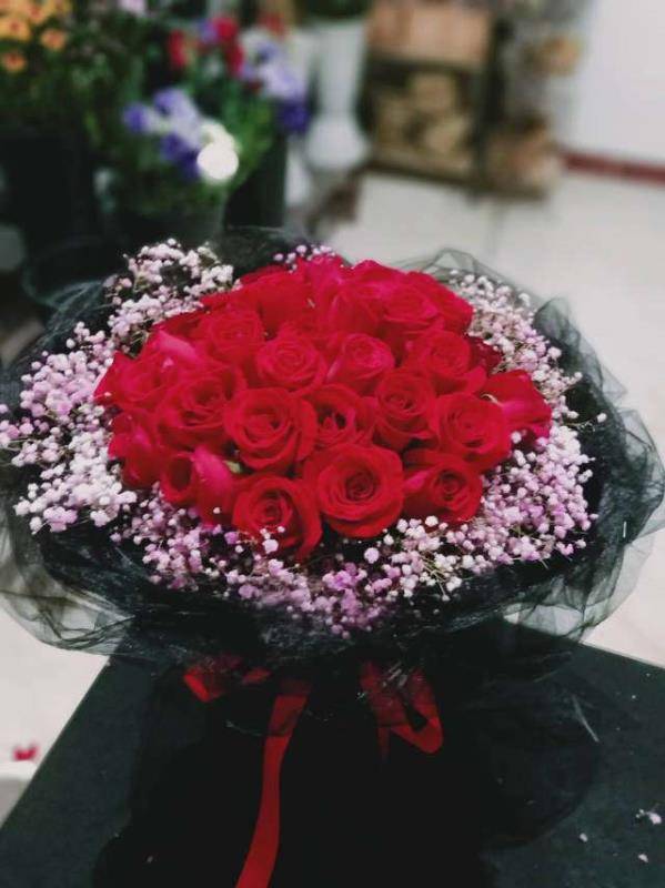 33支精品红玫瑰黑纱包,如图 |