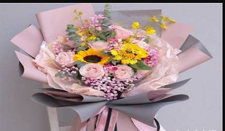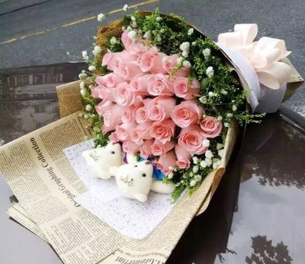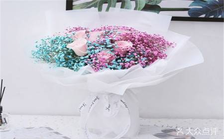 上海花千坊爱上海星空佳人-6朵粉玫瑰满天星混搭花束,如图 |