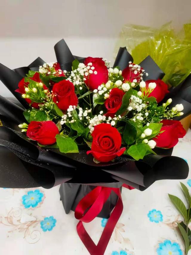 上海花千坊爱上海6朵粉玫瑰配满天星花束 如图 |