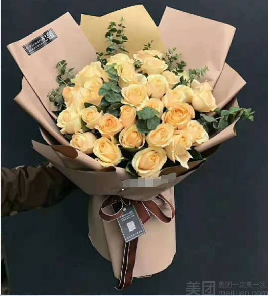 上海花千坊爱上海33朵香槟玫瑰花束,如图包 |