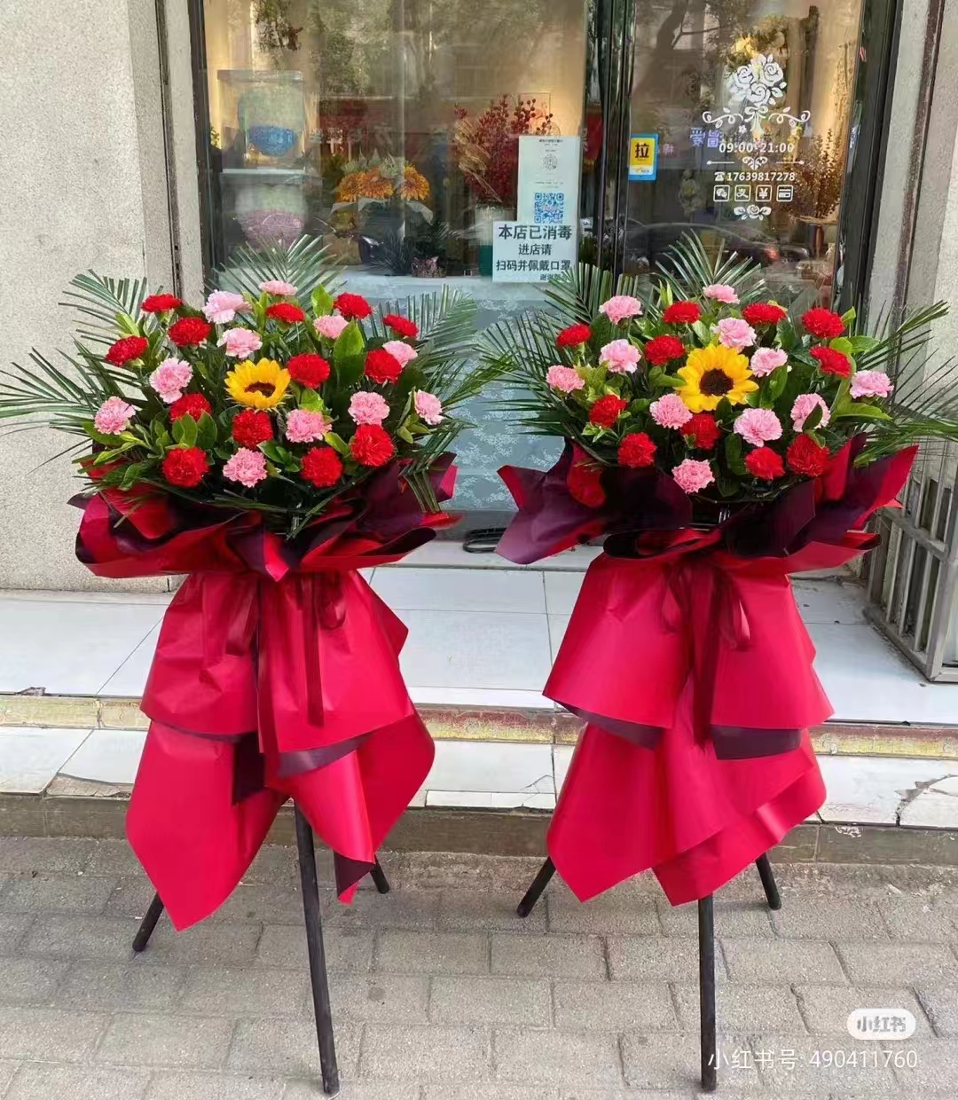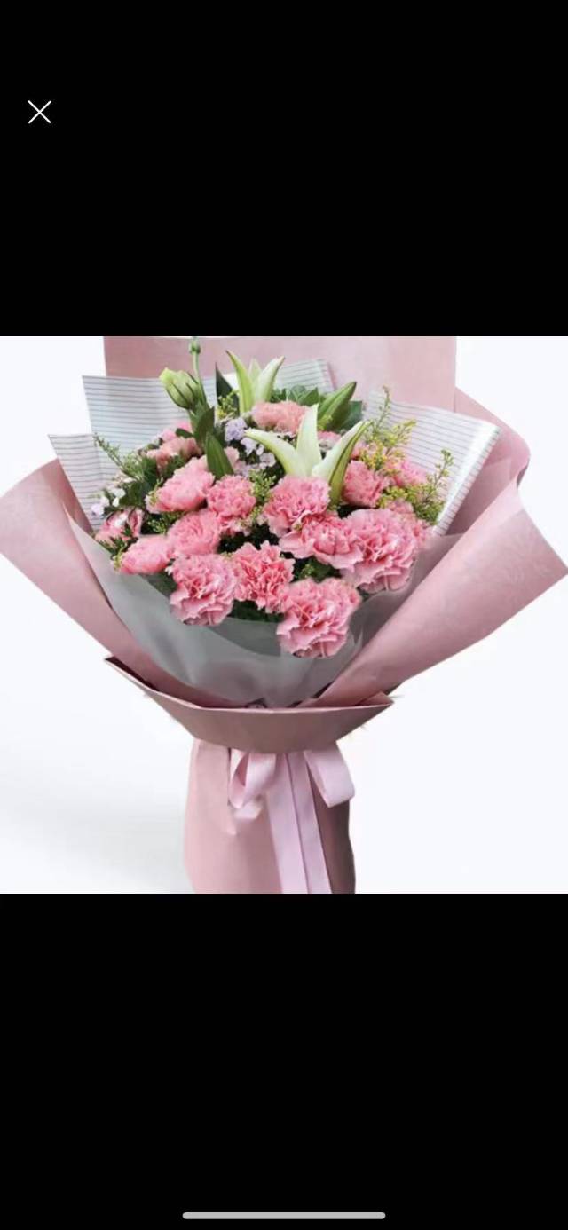 上海花千坊爱上海19朵粉康乃馨百合花束,如图 |