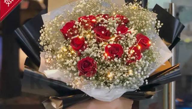 3朵红玫瑰配满天星加灯,如图包 |