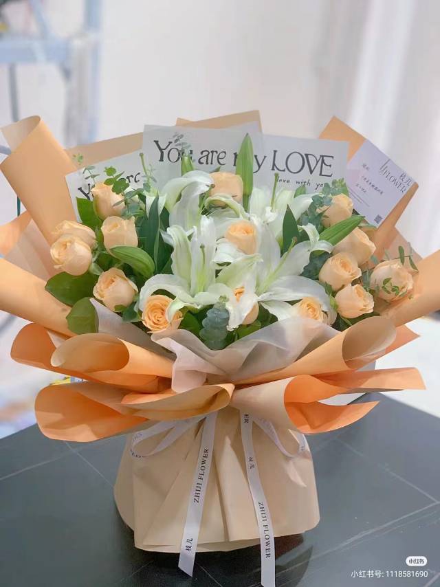 11朵红玫瑰加一支多头白百合花束. 数量:1 |