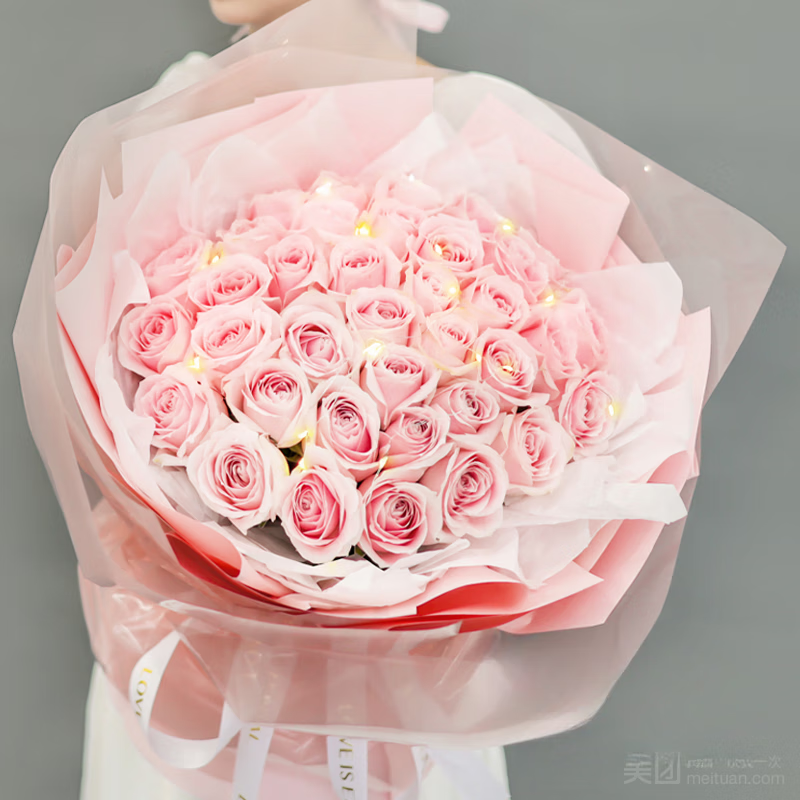 上海花千坊爱上海6朵粉玫瑰粉满天星花束,如图 |