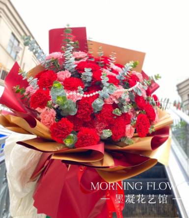 上海花千坊爱上海33朵红康乃馨粉康乃馨混搭花束 按图 |