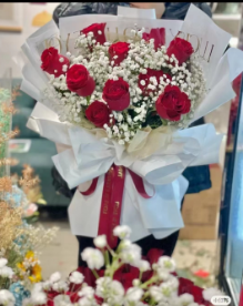 上海花千坊爱上海33朵红玫瑰满天星礼盒装,如图 |