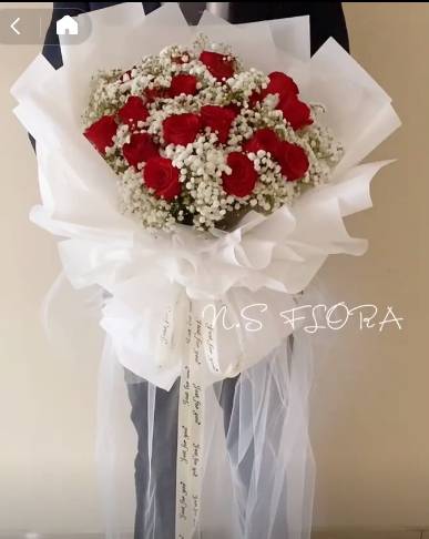 上海花千坊爱上海27朵红玫瑰满天星混搭花束 如图包装