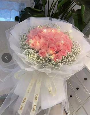 上海花千坊爱上海33朵粉玫瑰 搭配白色满天星花束如图 |