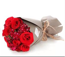 6朵粉玫瑰 蓝色,粉色满天星花束 |