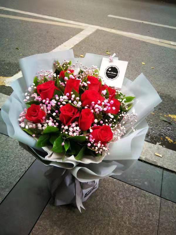 上海花千坊爱上海11朵红玫鲜花束,如图包