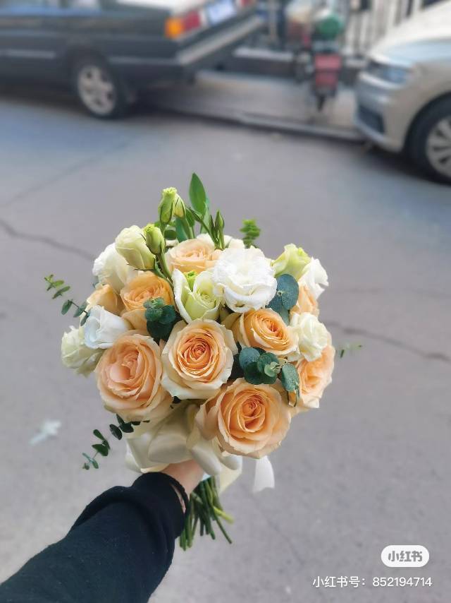 16朵香槟配洋桔梗新娘手捧花 |