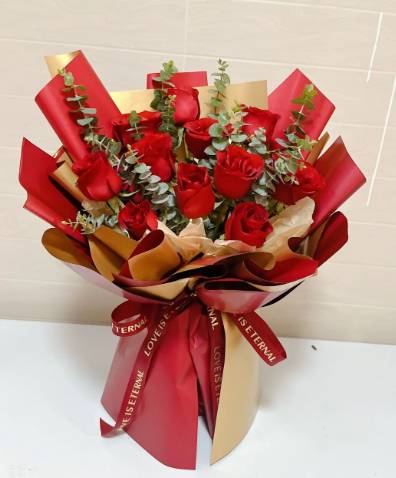 11朵红玫瑰花束 按图包装加彩灯 |