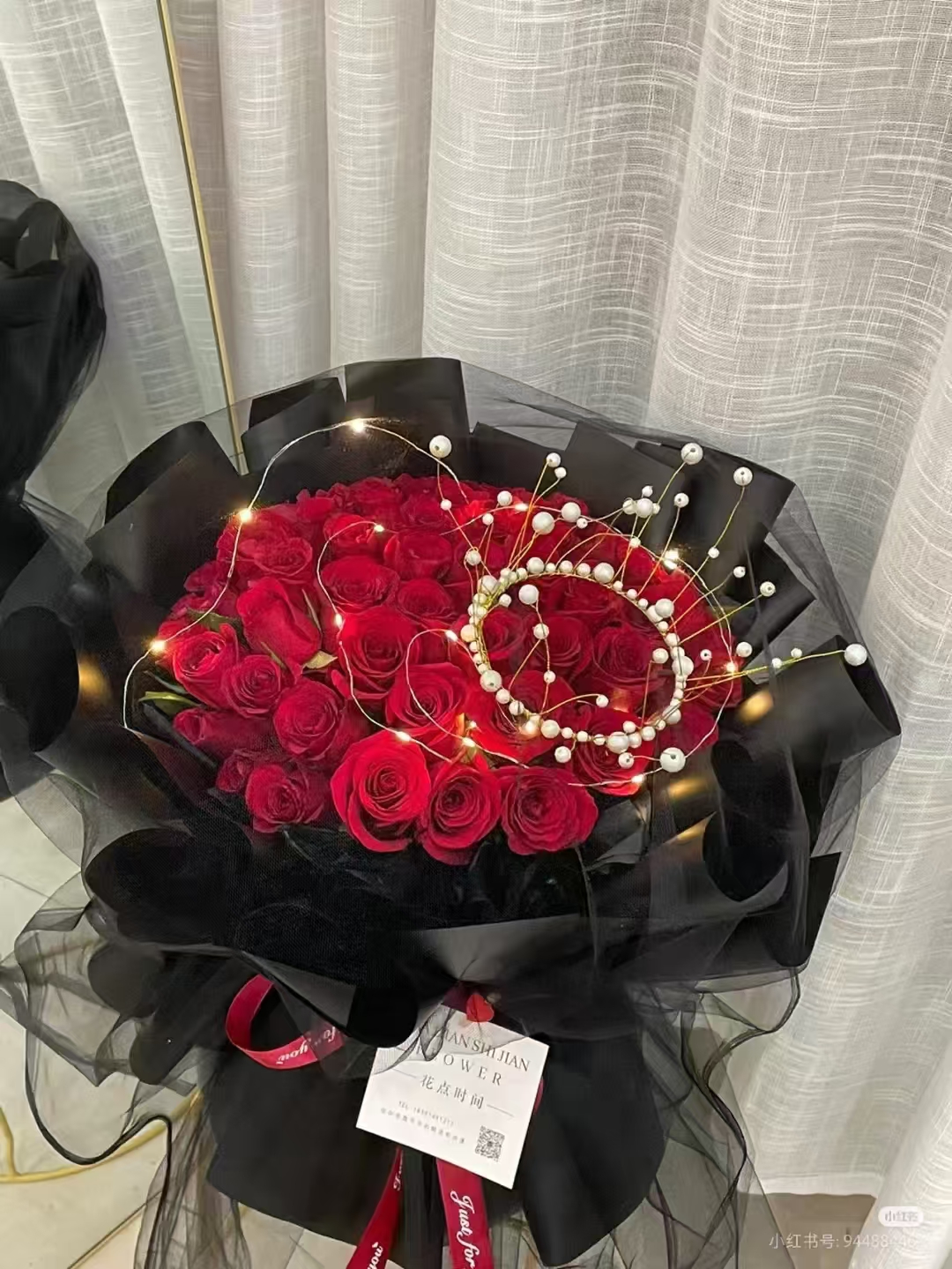 上海花千坊爱上海33支爱莎玫瑰花束按图包,如图 |