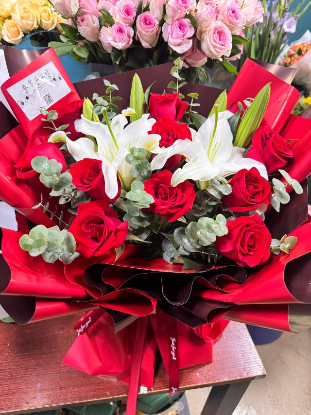 上海花千坊爱上海19朵红玫瑰白玫瑰混搭花束 按图包装 |