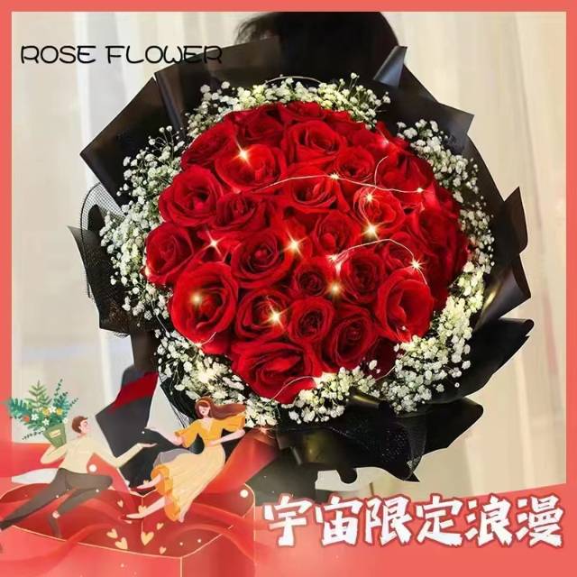 9朵粉玫满天星如图 |