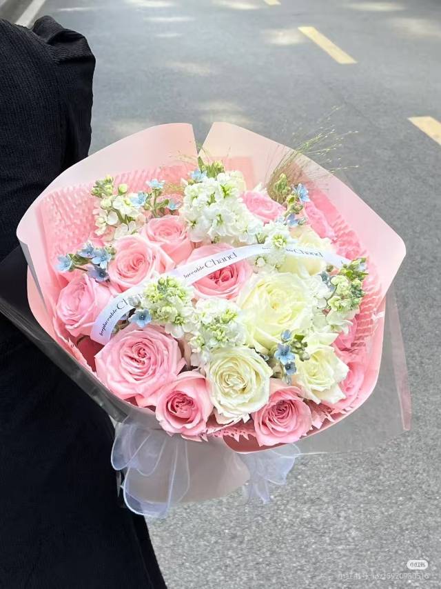 33支粉、白玫瑰混搭白罗兰花束,款式如图 |